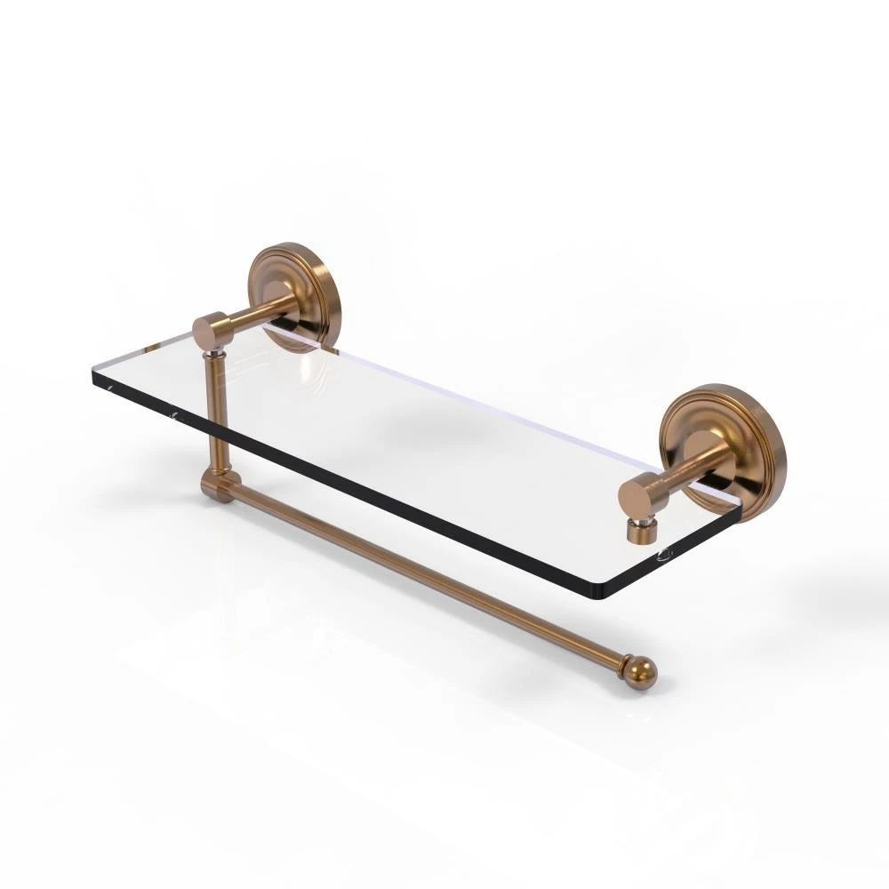 Maximize space and efficiency with this beautiful glass shelf and paper towel holder combination. Made of solid brass and tempered glass this classic unit will enhance any kitchen.
