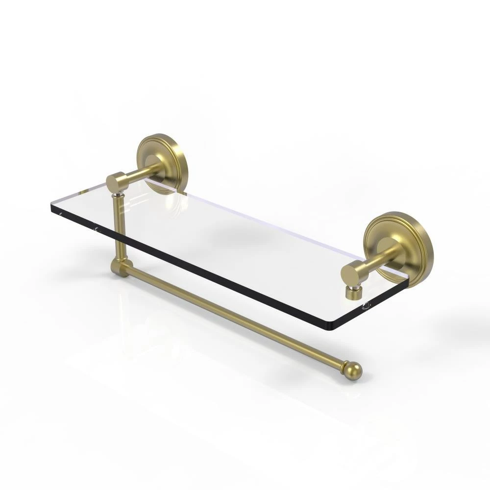 Maximize space and efficiency with this beautiful glass shelf and paper towel holder combination. Made of solid brass and tempered glass this classic unit will enhance any kitchen.