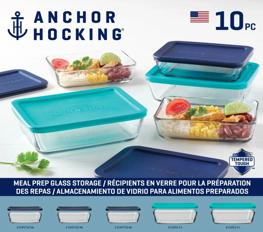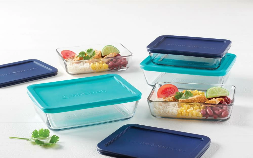 Anchor Hocking glass food storage containers are essential in any kitchen. These products feature durable glass bottoms under sturdy plastic lids. The two pieces join together smoothly and tightly, so you can carry soups, salads, and even whole meals to work worry-free. Save yourself time cleaning by hand, as the dishwasher will handle the mess. Reuse again and again, as, unlike plastic, the glass won’t deform or discolor. When you’re finished, save yourself room in cabinets with the stackable nesting feature.