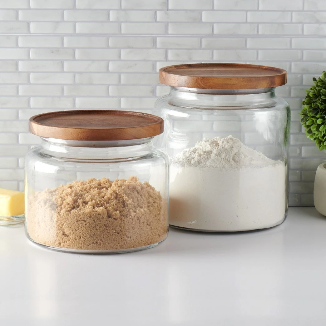 The exceptional beauty of these jars add style and function to all rooms of the home. With thick side walls for added durability and stability, the clear glass jar features a wide mouth opening for ease of access and scooping, making the jars perfect for storing flour, sugar, or cereal on the countertop or in the pantry. They are also perfect for bathroom storage and for storing or showcasing craft or home decor items throughout the home.