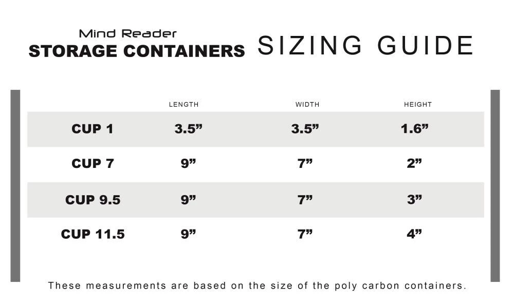 - DIMENSIONS – 8 oz/1 cup: 3.5 in L x 3 in W x 4 in D, 56 oz/7 cups: 9 in L x 7 in W x 2 in D, 76 oz./9.5 cups: 9 in L x 7 in W x 3 in D, 92 oz./11.5 cups: 9 in L x 7 in W x 4 in D