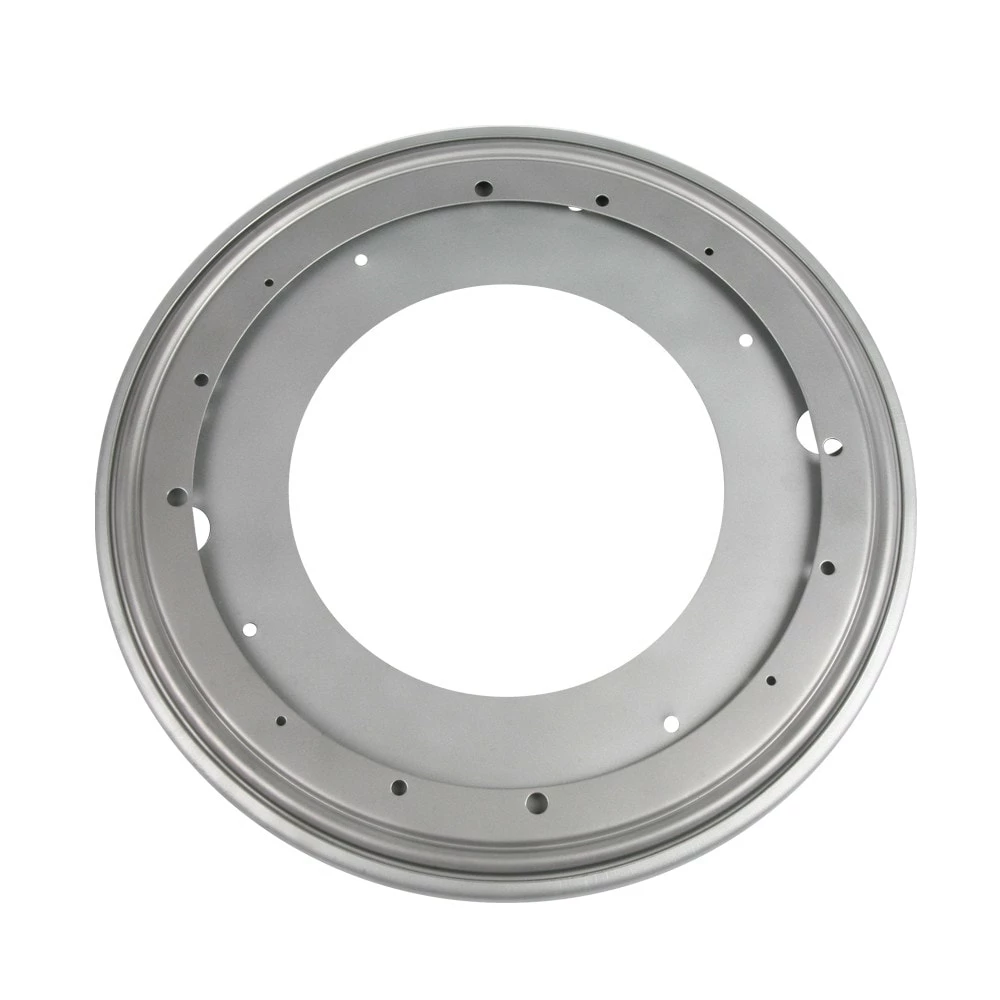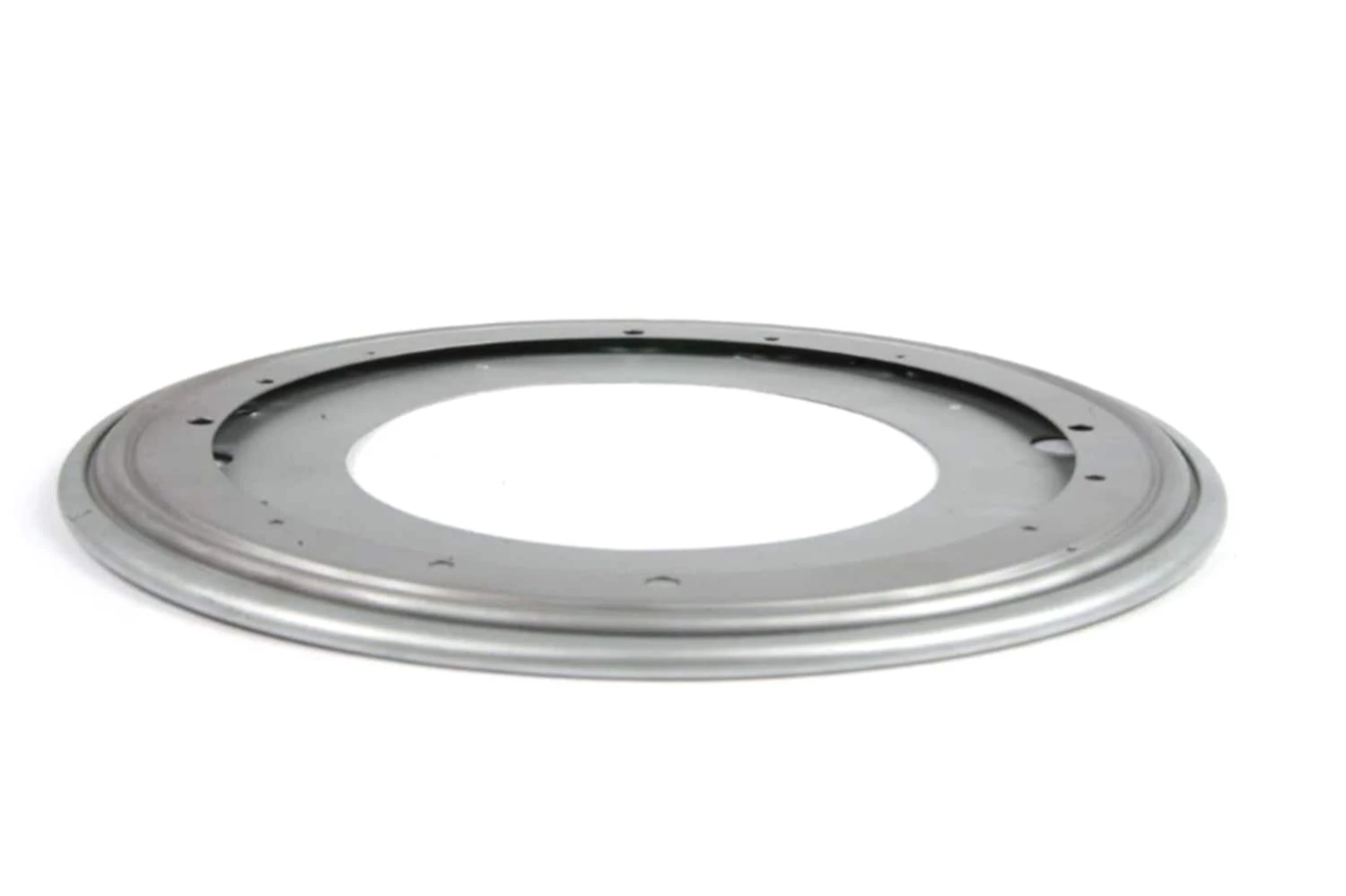 Swivel plate 12 In. diameter with a capacity of 1000 lbs (454 kg). Made of corrosion-resistant galvanized steel. Our swivel bearing design has a deeper race groove, encapsulating the balls more effectively and allowing them to move more smoothly. The ideal product for mounting a lazy Susan on a shelf.