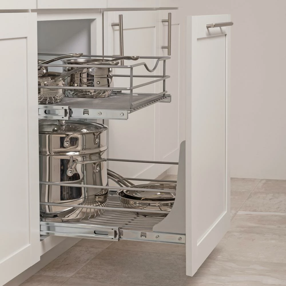Get easy access to under-cabinet storage with this Simply Put door mounting kit. The mounting bracket attaches cabinet door to a pullout cabinet organizer for simple one-step access. Use with standard-width cabinets or openings up to 3 in. wider. For use with Simply Put double-tier pullout baskets and most Simply Put pullout waste bins. PLEASE NOTE, door kit is not compatible with the SP-ECW10-1-35-W waste bin.
