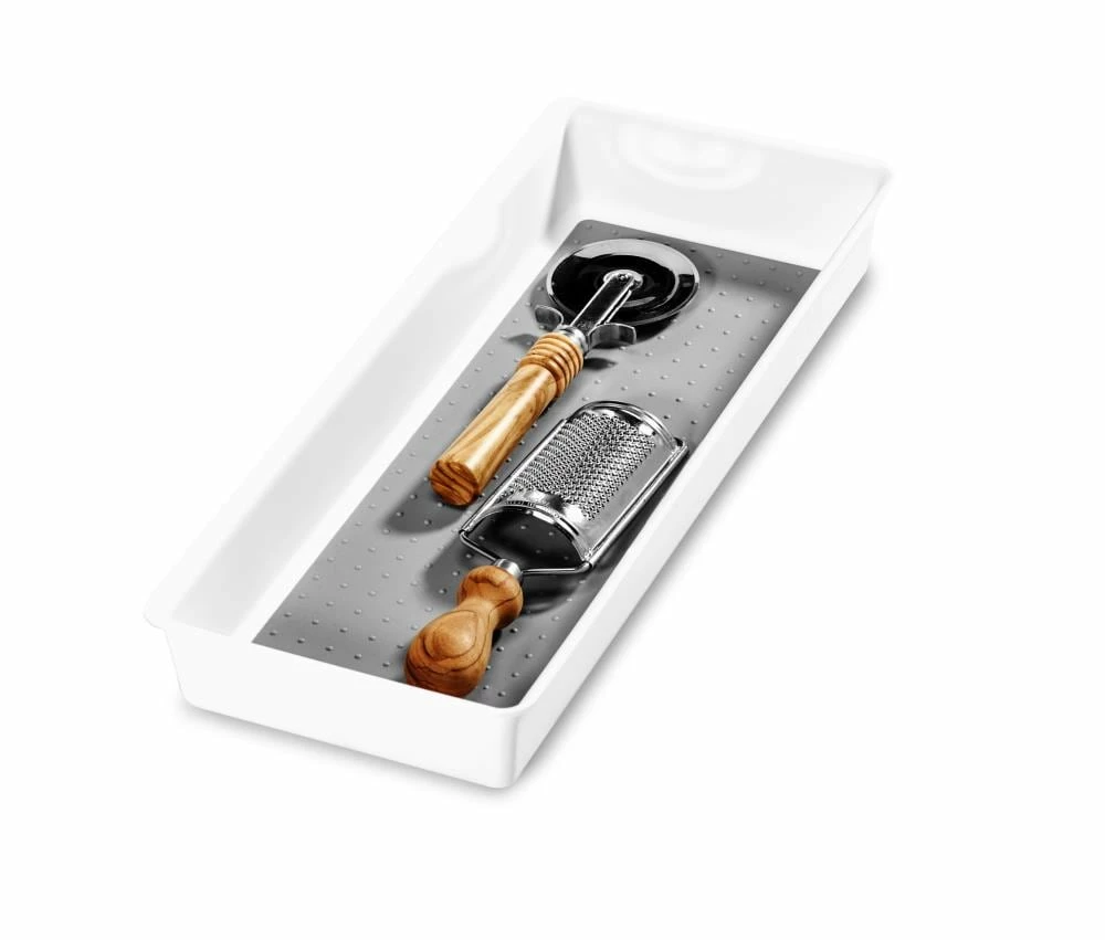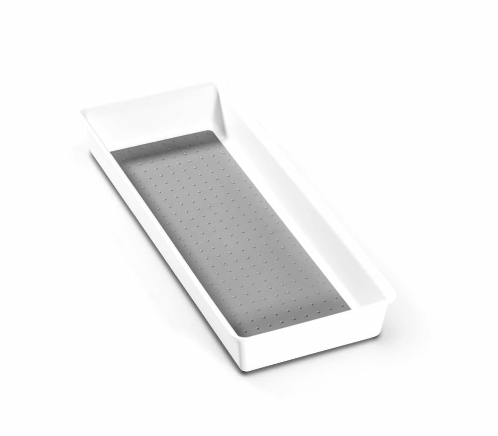 The basic bin is a simple one-compartment bin that is essential for creating your own personalized drawer organization system. It is a multi-purpose storage bin that can be used throughout the entire home to store your favorite items. It has revolutionary soft-grip lining and non-slip rubber feet to keep items in their place. Rounded corner for easy cleaning.