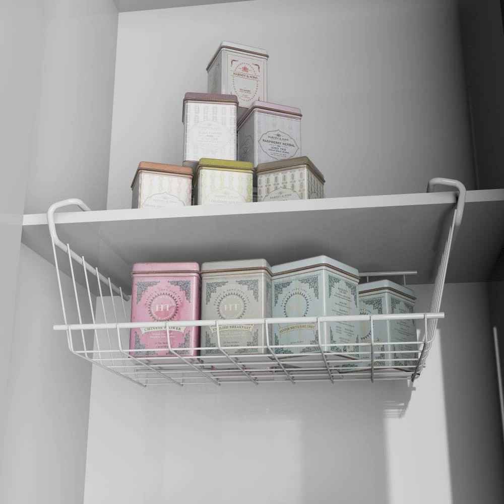 Customize your cabinet space with this convenient and no-tools-required bin. Place onto any cabinet shelf and create usable space for small items.