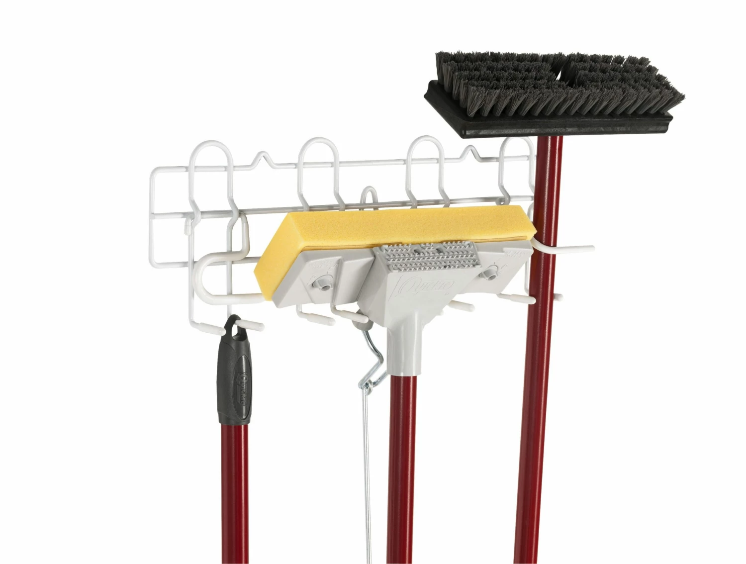 - Vinyl coating keeps brooms and mops in place
