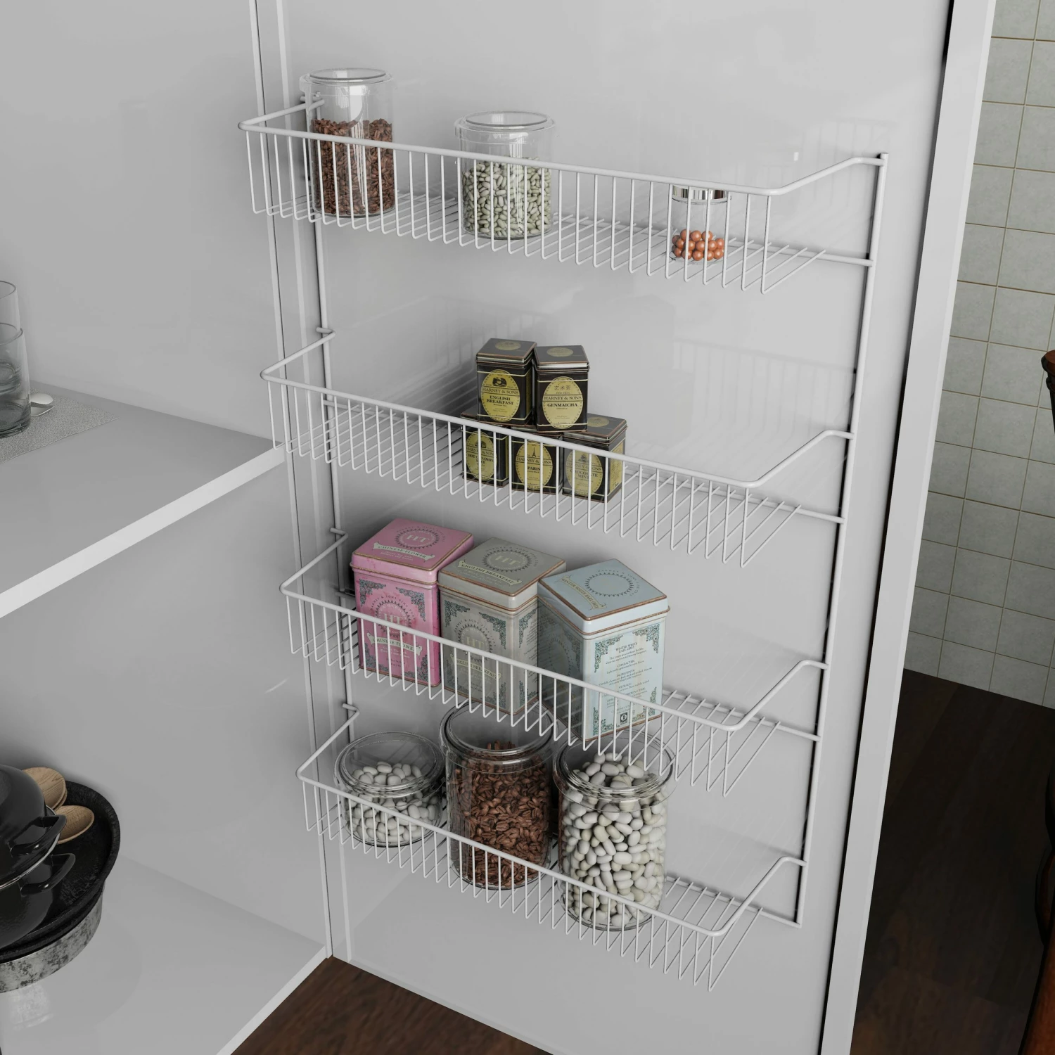 Customize your kitchen, bath or utility space with this 4-tier shelf. This item features small mesh wire to prevent small items from falling through. Great for any room.