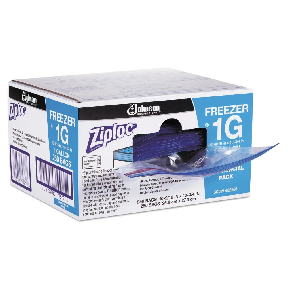 Don’t simply place your food in the freezer—help keep it fresh and avoid waste. These clear freezer bags feature unique interlocking zipper seals that securely lock in freshness. By keeping your food fresh you can reduce waste. Space-saving storage protects foods from drying out and freezer burn. For increased organization, the bags feature write-on labels to help identify and date contents. Double Zipper. Application: Food Storage; Capacity Range (Volume) [Max]: 1 gal; Thickness: 2.7 mil; Material(s): Plastic.