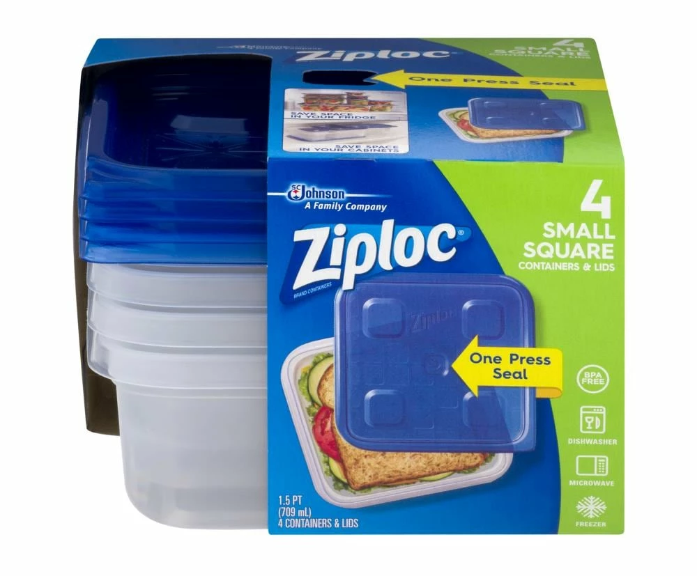 Ziploc containers with one press seal and space-saving design. Designed to snap closed with one simple press on the lid, these containers also save space in your cabinets and your fridge.